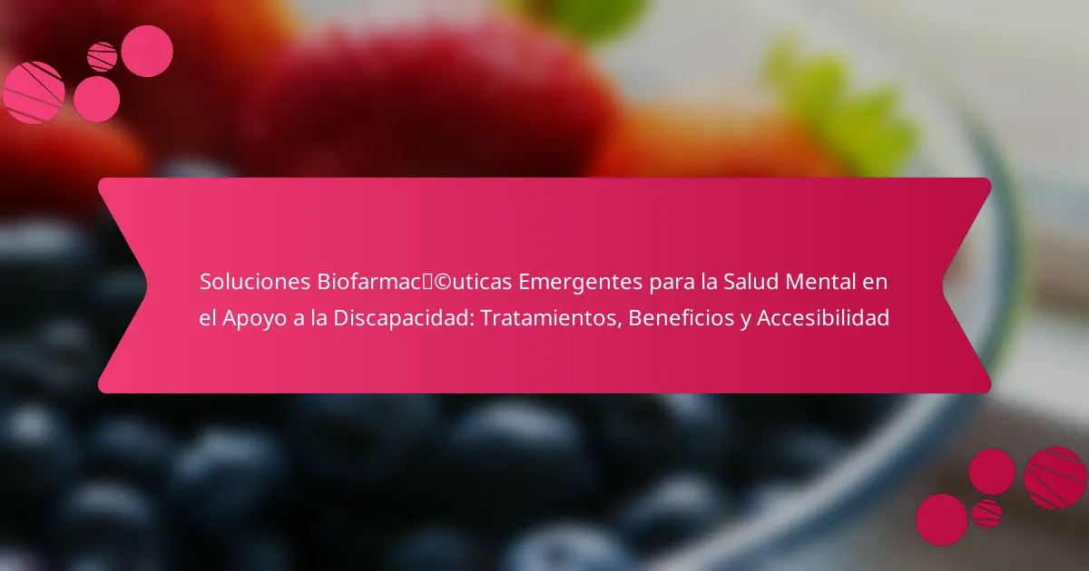 Las soluciones biofarmacéuticas emergentes para la salud mental están transformando el apoyo a la discapacidad al mejorar la accesibilidad y la efectividad del tratamiento. Este artículo explora terapias innovadoras, sus beneficios para el manejo de síntomas y la calidad de vida, y la importancia de la atención personalizada. También aborda consideraciones éticas y la integración de opciones de telemedicina para garantizar que las personas con discapacidades reciban el apoyo necesario.